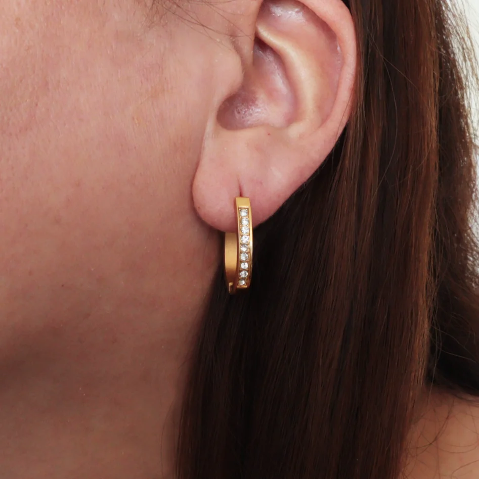 Las Argollas Brillance 2,1 cm son el complemento perfecto para quienes aman los accesorios clásicos con un toque de brillo y circones. Su diseño limpio y atemporal las convierte en un imprescindible para el uso diario o para dar un acabado pulido a cualquier look.