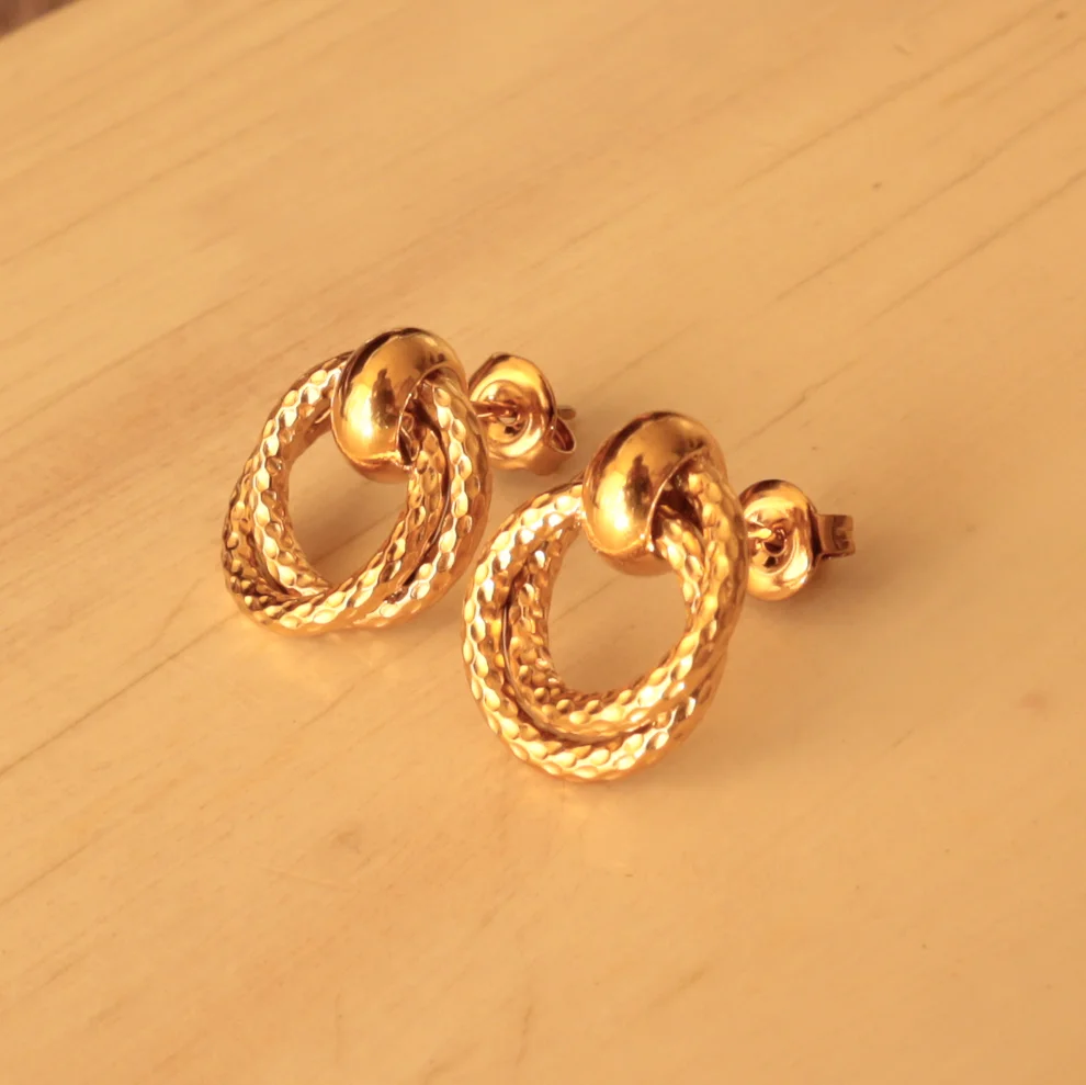 Dale un toque de elegancia a tu look con los Aros Trenzados Elegance, diseñados para realzar tu estilo con un acabado brillante y sofisticado. Fabricados en acero inoxidable de alta calidad y enchapados en oro de 18 quilates (4 micras), estos aros son la opción perfecta para quienes buscan piezas duraderas y de alto impacto visual.